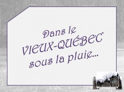 Et, dans la belle ville de Québec, j’ai même trouvé la pluie ! Cependant, comme je suis d’un naturel plutôt positif, j’ai pris beaucoup de plaisir à redécouvrir une partie de al vieille ville en compagnie de mes amis. Malgré la pluie, cela avait quand même un certain charme teinté d’un peu de nostalgie. Voici donc le résultat de ma promenade.