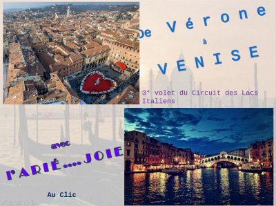 Mais je vous sais impatients de vivre la fin de notre périple autour des Lacs Italiens, alors voici la romance de l’ARIÉ…..JOIE avec le romantisme nécessaire à la rencontre des Amants de Véronne et des charmes de la Sérénissime.
