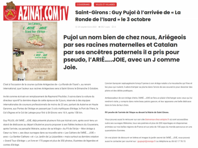 Après avoir fait valser les chiffres, c’est vers l’écriture qu’il se tourne avec l’écriture en 3 volets de l’histoire d’un petit blondinet qui grandissait sur les bords de l’Arize à l’époque des rigueurs de l’hiver 1956 : « Au Fil de l’Arize, à Cœur ou Vers », ainsi que des carnets de voyage retraçant, en texte et en photos, ses pérégrinations à travers le monde.