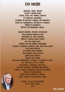 Pour son exposition, son ami, Guy Jutard, a écrit deux poèmes qui n’ont pas été ajoutés au diaporama suivant l’avis de l’exposante mais ils sont tellement beaux que je vous les transmets quand même.