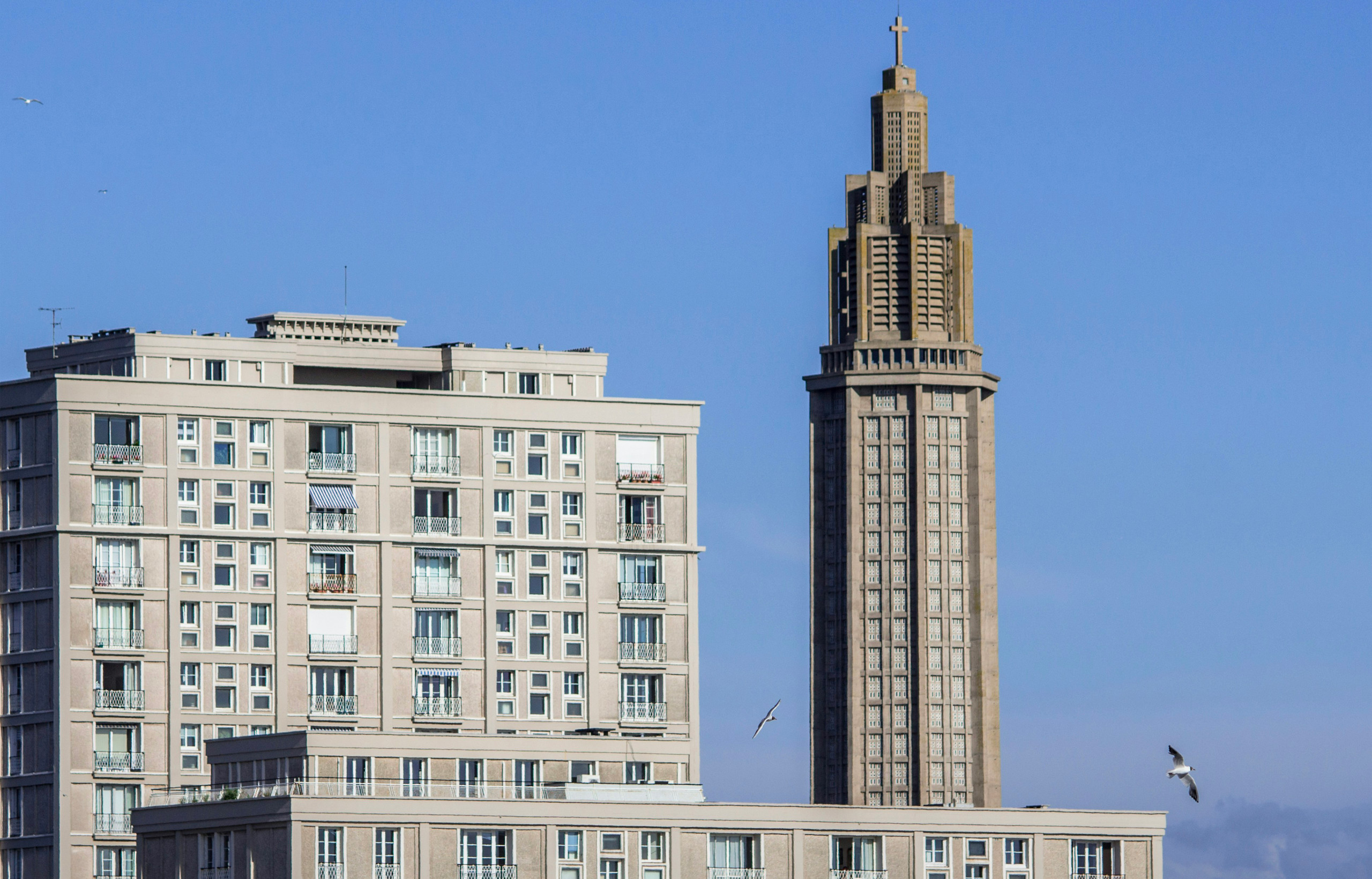 Le Havre reconstruit par Auguste Perret est un exemple unique d’urbanisme d’après‑guerre. Il est fondé sur le béton armé, la trame modulaire et une volonté de lisibilité urbaine. Le centre‑ville est inscrit au patrimoine mondial de l’UNESCO (2005)