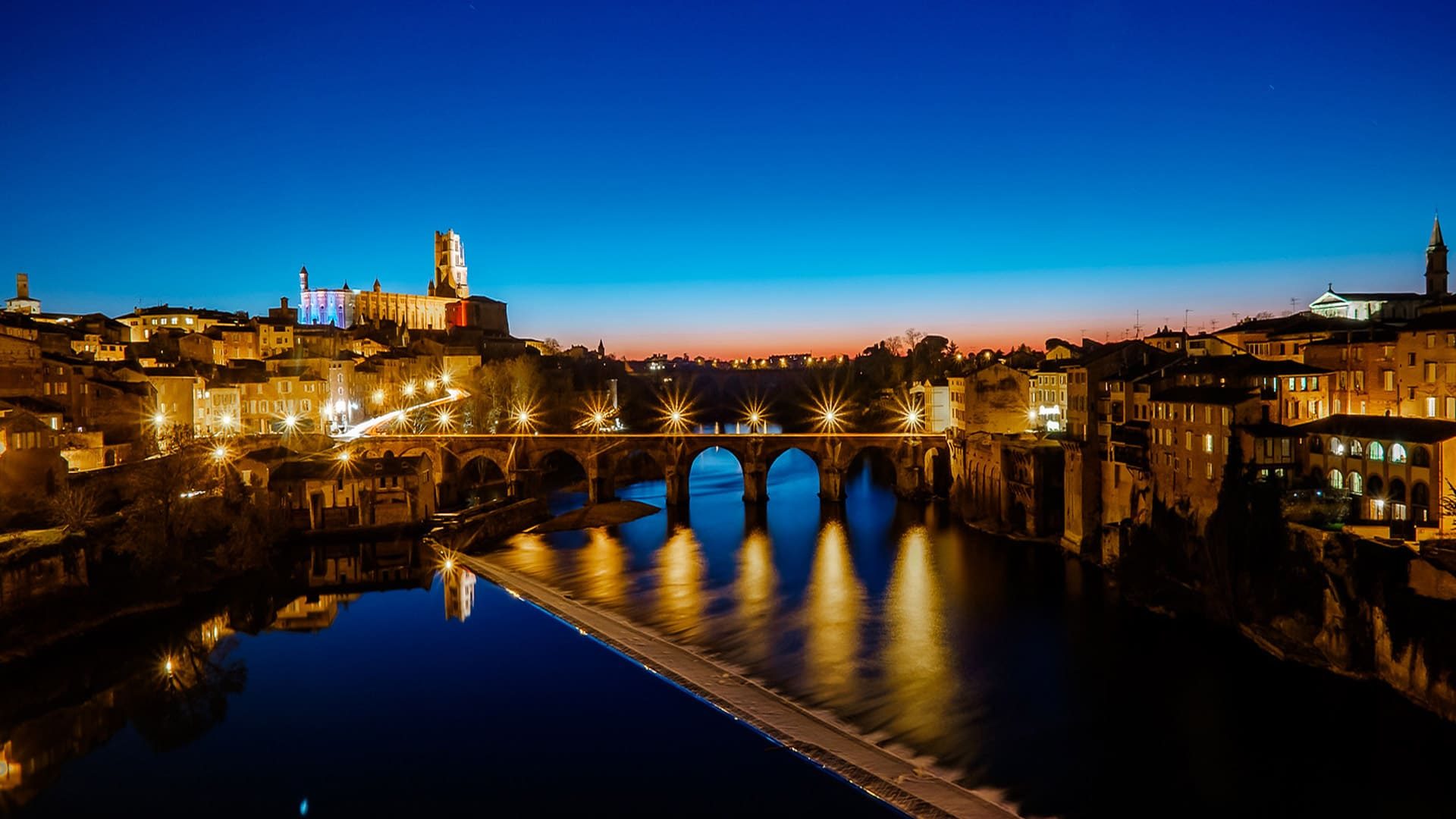 Le Pont Vieux, datant du XIᵉ siècle, est l’un des plus anciens ponts de France encore en usage. En le traversant, vous aurez une vue superbe sur la cathédrale, le palais et tout le front de brique qui borde le Tarn.