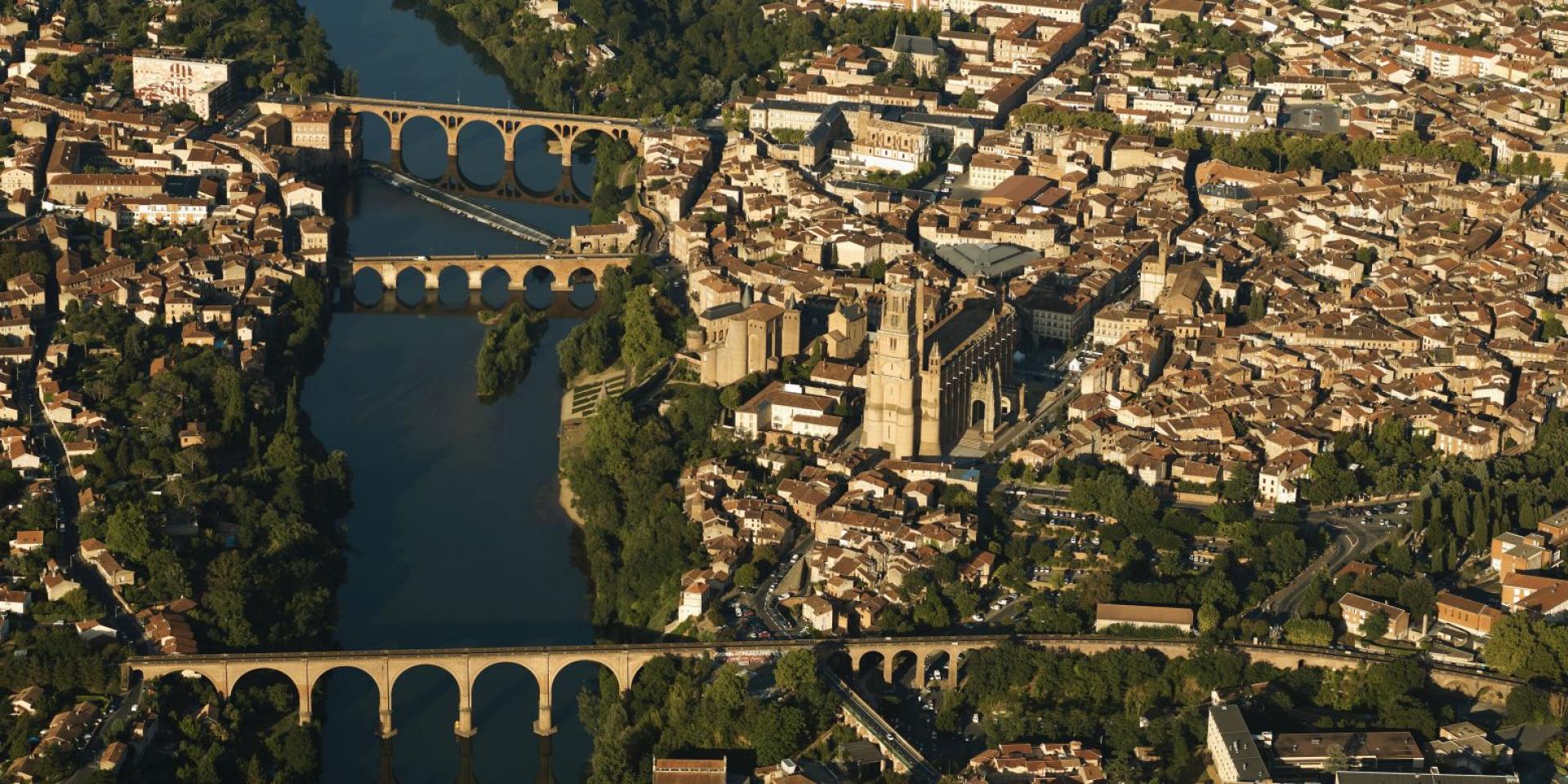 La rivière du Tarn structure le paysage urbain et offre de nombreux points de vue. Outre le Pont Vieux, plusieurs autres ponts et belvédères permettent d’admirer la ville depuis la rive opposée.